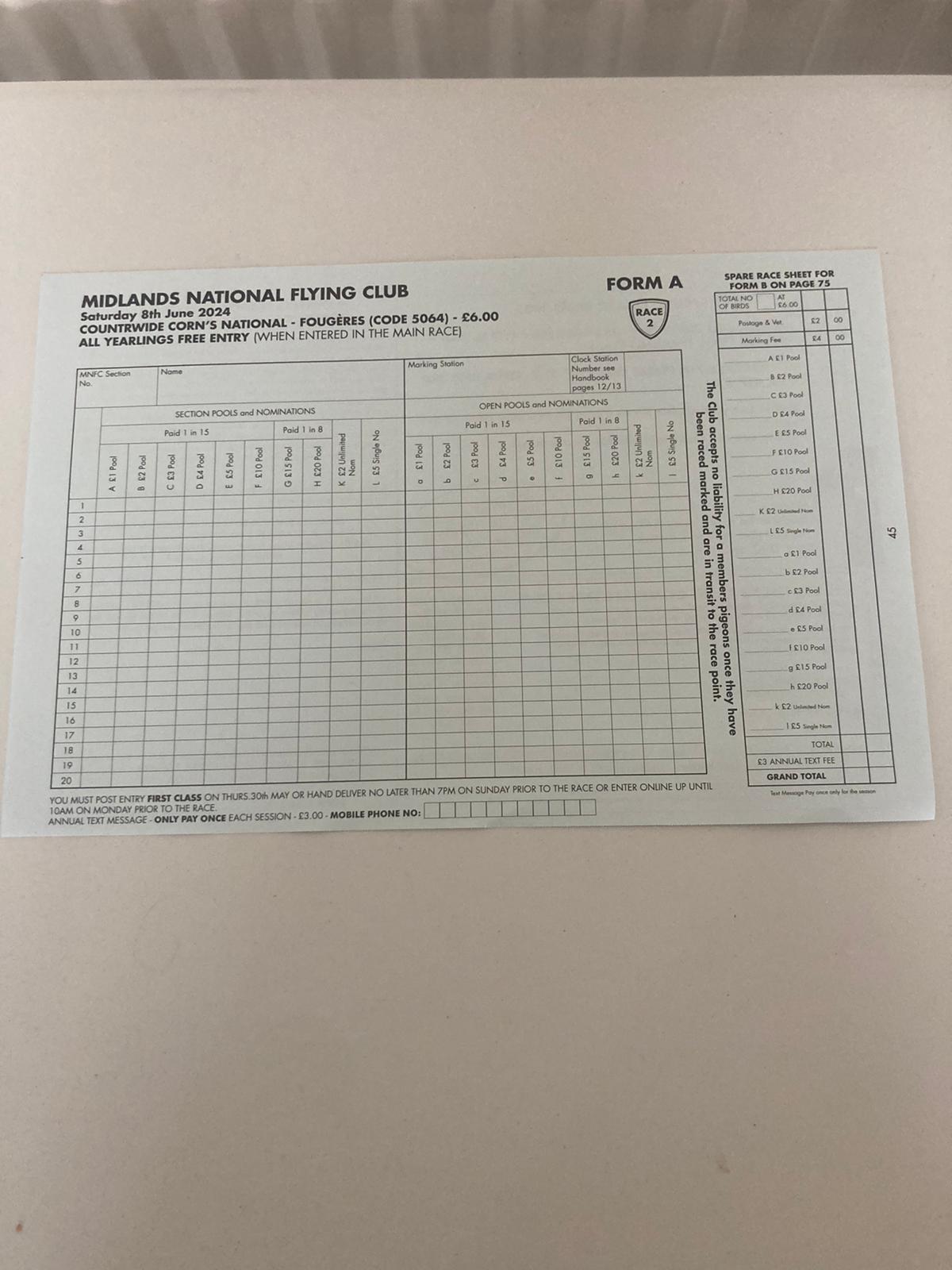 Absolute brilliant weather. Birds successfully liberated in a light Southerly wind direction. 25 Members sent 1500 birds